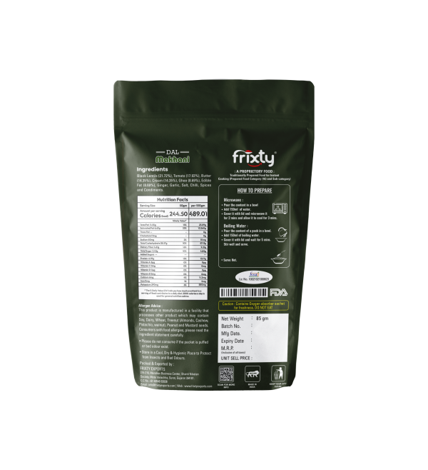 ➔ Frixty’s Ready To Eat Dal Makhani is prepared with premium Urad Dal and cooked with blended spices in a delicious sauce. Dal Makhani from Frixty matches the unrivaled taste of grandma’s magic recipe.